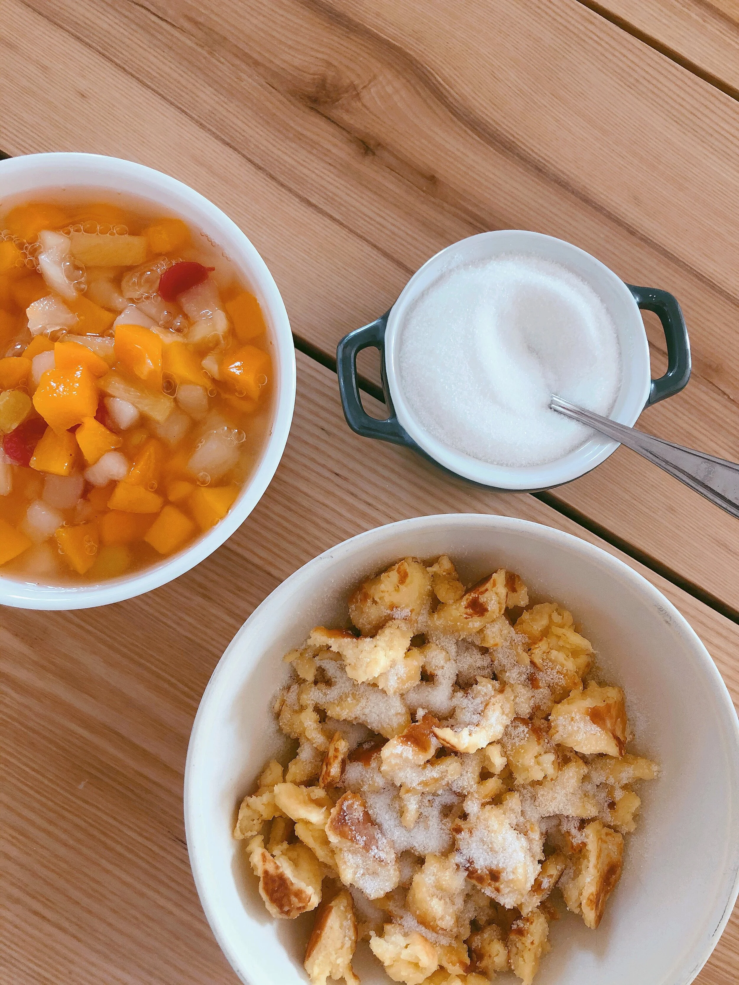 I also like eating my schmarrn with peaches or a fruit cocktail. It’s just something I’ve always done and I love it. I felt like a kid again eating this dish ♡